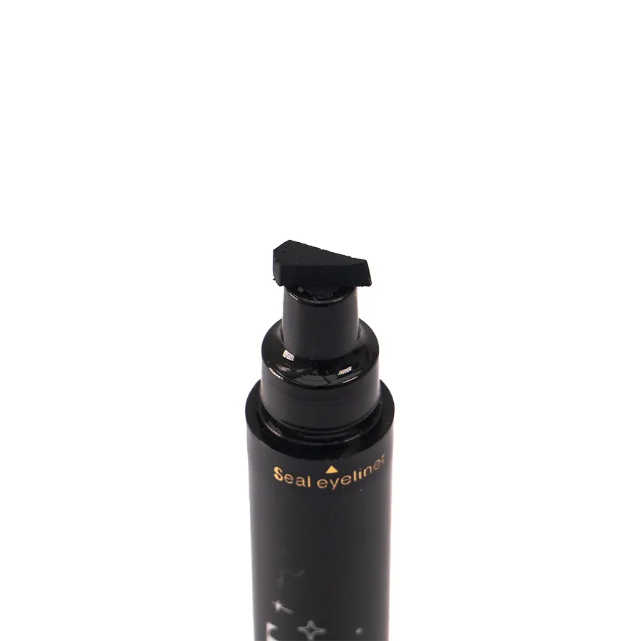 Delineador doble, por un lado plumón con el que puedes lograr trazos finos o gruesos según tu gusto y necesidad. Por el otro costado trae un sello en forma de delineado de gato para que sea mas facil y rapido definir la linea