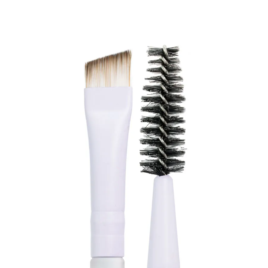 Incluye 1 brocha doble para cejas, 1 brocha tipo kabuki mini y 1 brocha difuminadora angular.